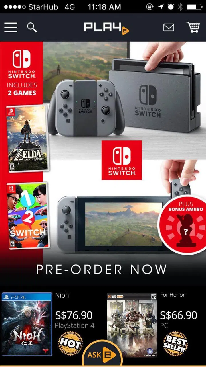 Popular games and console retailer Qisahn has their own pre-order deal coming through. The Nintendo Switch console will be bundled with both games (1-2-Switch and LoZ: BotW) at S$659. Both console colors, Grey and Red/Blue, are available, and folks who’ve pre-ordered will get their console on the Switch’s launch day (3rd March 2017).
