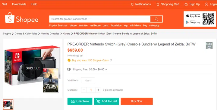 Updated on 16th February 2017: Online retailer Shopee will also be doing a pre-order run that will start on 16th February 2017. The console will be bundled with the LoZ:BotW game at S$599 for all pre-orders (listing found here). Formerly, it was for the first 100 customers, but Shopee has decided to lower the price twice in two days further after this piece was published. Note that the Shopee exclusive does not come with the other commonly bundled game, 1-2-Switch. Also note that this bundle only offers the Nintendo Switch in Grey.