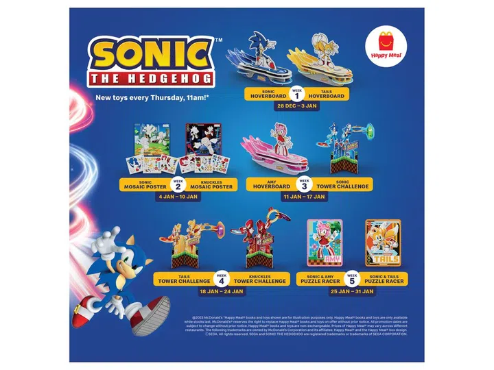 Kicking off on 6 January 2024, fans can gear up for a ‘Meet & Greet’ with Sonic himself and snag a photo with everyone's favorite blue blur at various McDonald’s locations on weekends during this period. Each participating outlet will host two sessions daily – a chance to meet Sonic between 1:30pm to 2pm and then again from 6pm to 6:30pm (SGT). Here’s the lowdown on the schedule: