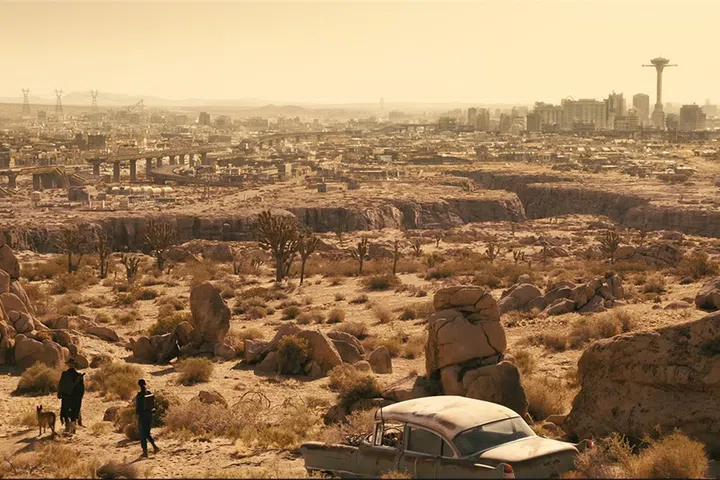 What the outskirts of New Vegas look like, 15 years after the game took place. Image: Prime Video YouTube channel.