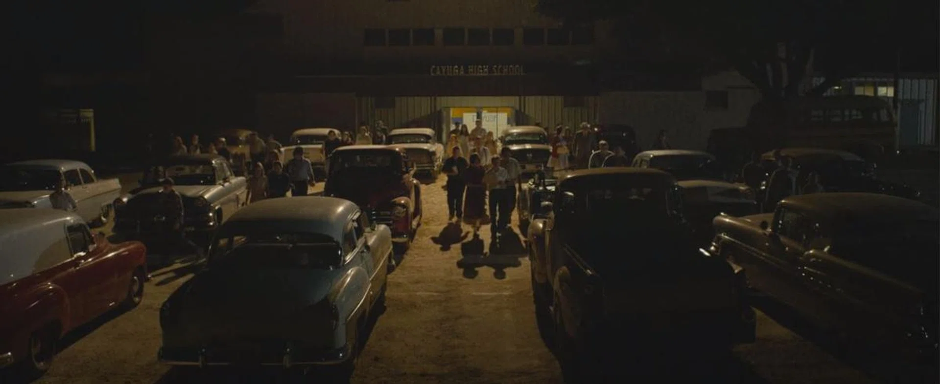 We're thrust headfirst into the rhythms of an almost desperately mundane night in Cayuga, as most of the town prepares to gather to watch its varsity basketball team play. Everett (Jake Horowitz) is a fast-talking high school graduate who is helping to set up the game's recording equipment, and he takes the opportunity to record segments for his radio show with Fay (Sierra McCormick) as he makes his way to local station WOTW for his show. The station's initials will not be lost on those who know H.G. Wells, and it foreshadows what is lurking in the shadows in Cayuga on this night.