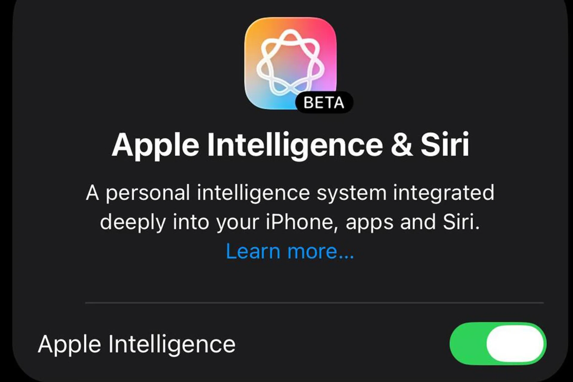 As a reminder, you will need to have a device that supports Apple Intelligence. This means you will need to be using an iPhone 15 Pro or newer and running the latest public beta of iOS 26. Afterwards, open the Settings app, tap on “Apple Intelligence & Siri,” and ensure that the Apple Intelligence option is enabled.