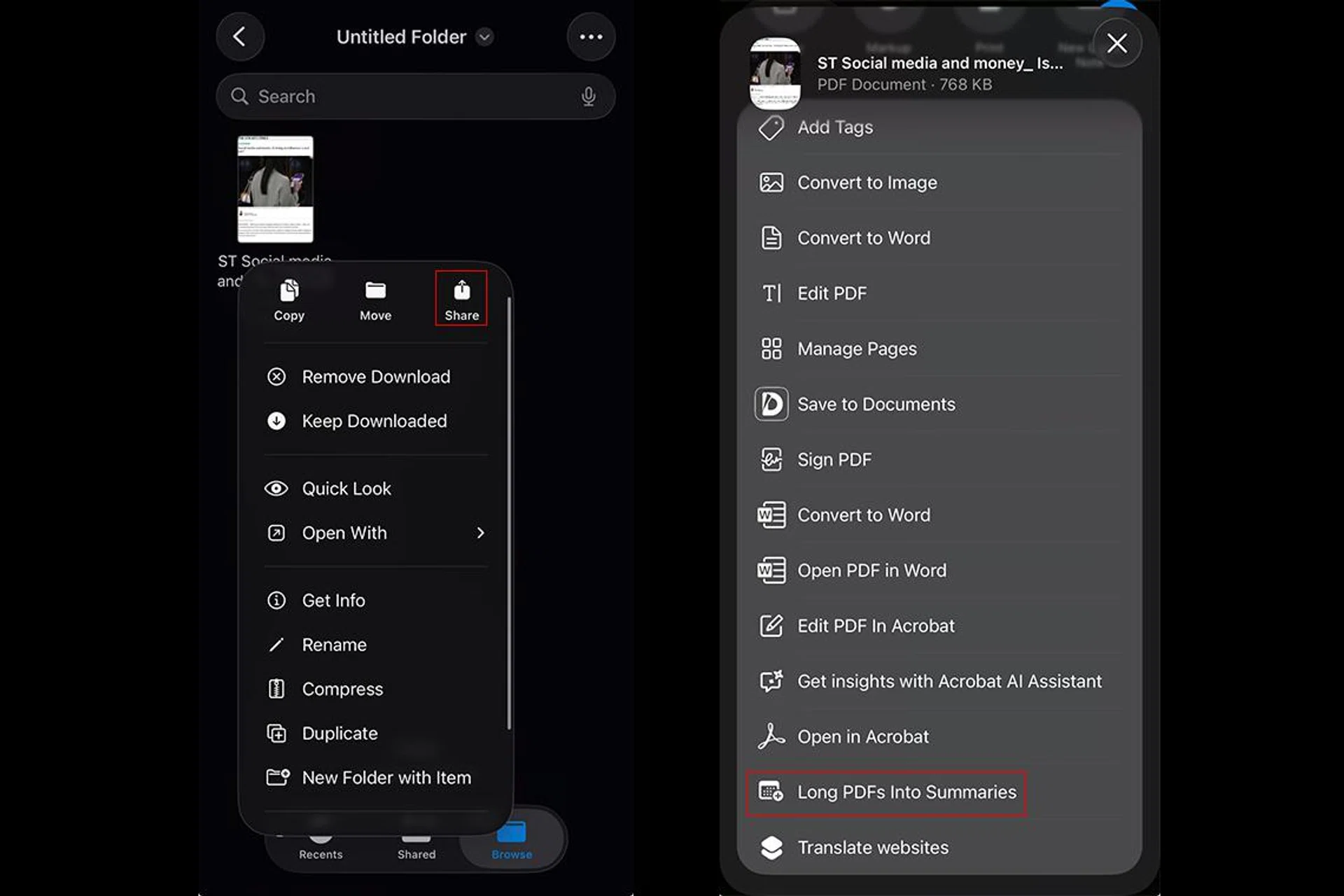 If you often receive long PDFs but don’t have time to read them fully, here’s a handy step by step guide to create a shortcut that can help you summarise them.