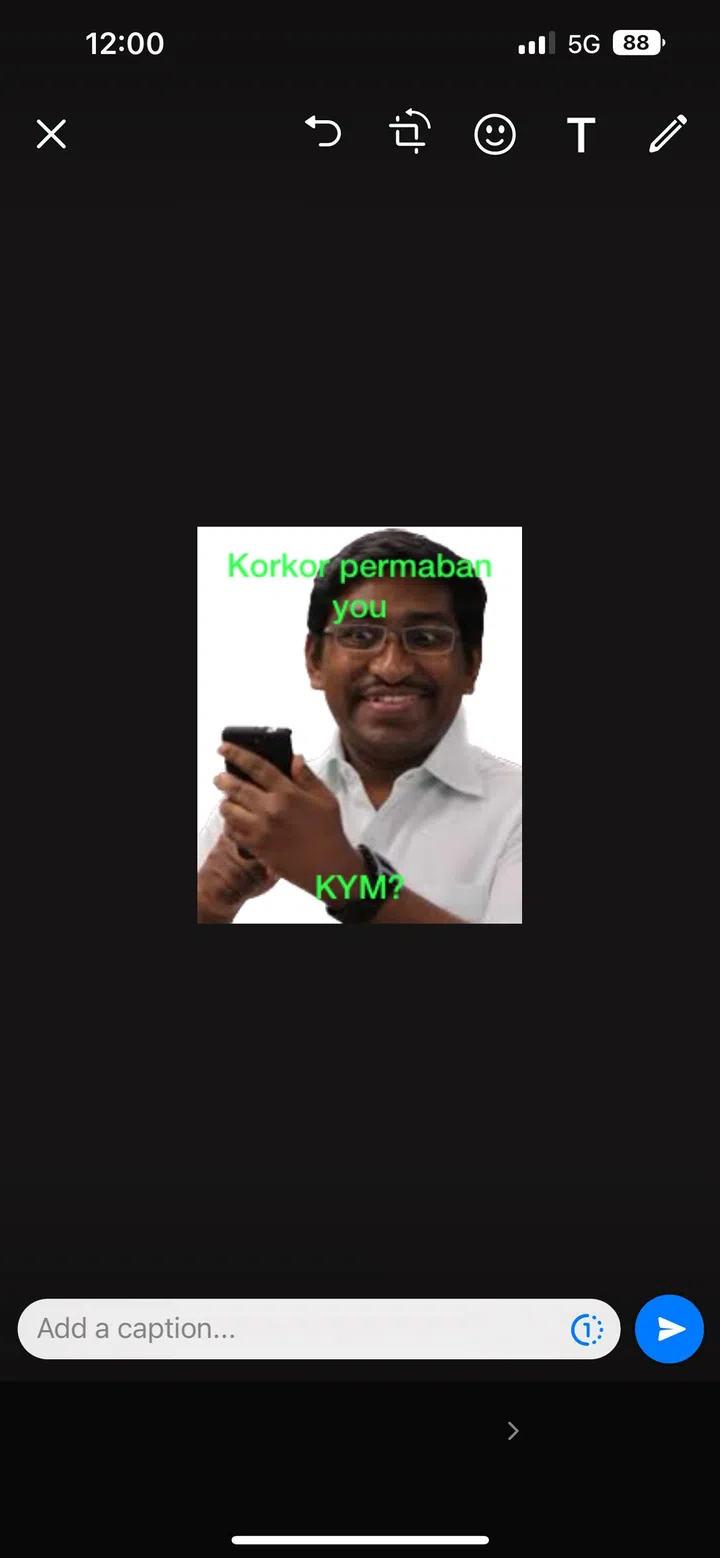 This step is pretty self-explanatory. You select the text editor (T symbol in the top right) to create and format your flavour text. So far, only WhatsApp allows you to add flavour text to your copied image before you hit send. The other messaging apps don’t quite let you, or have the same functionality as WhatsApp’s version of editing before sending.