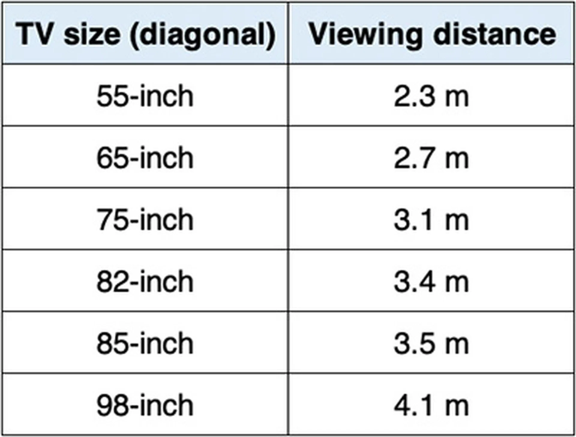 Here are the suggested viewing distances based on common 8K TV sizes currently in the market: