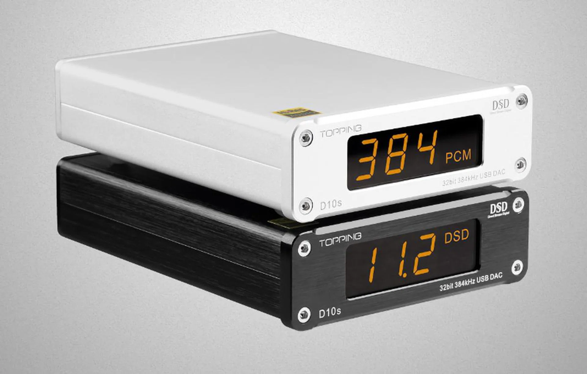 Inside the Topping D10S is an ESS ES9038Q2M DAC that’s capable of playing music that’s up to 32-bit/384kHz or up to DSD256. What’s unique about it’s powered solely via USB and that it features optical SPDIF and Coaxial outputs. This can be handy for connecting to powered speakers, many of which lack USB support but have optical inputs.