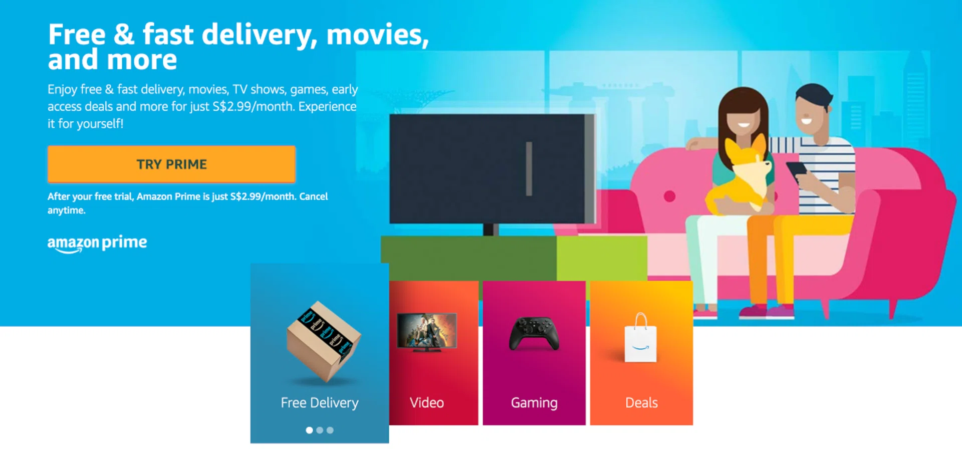 Signing up for Amazon Prime grants you exclusive access to lightning deals before everyone else. For just S$2.99 per month, you get: