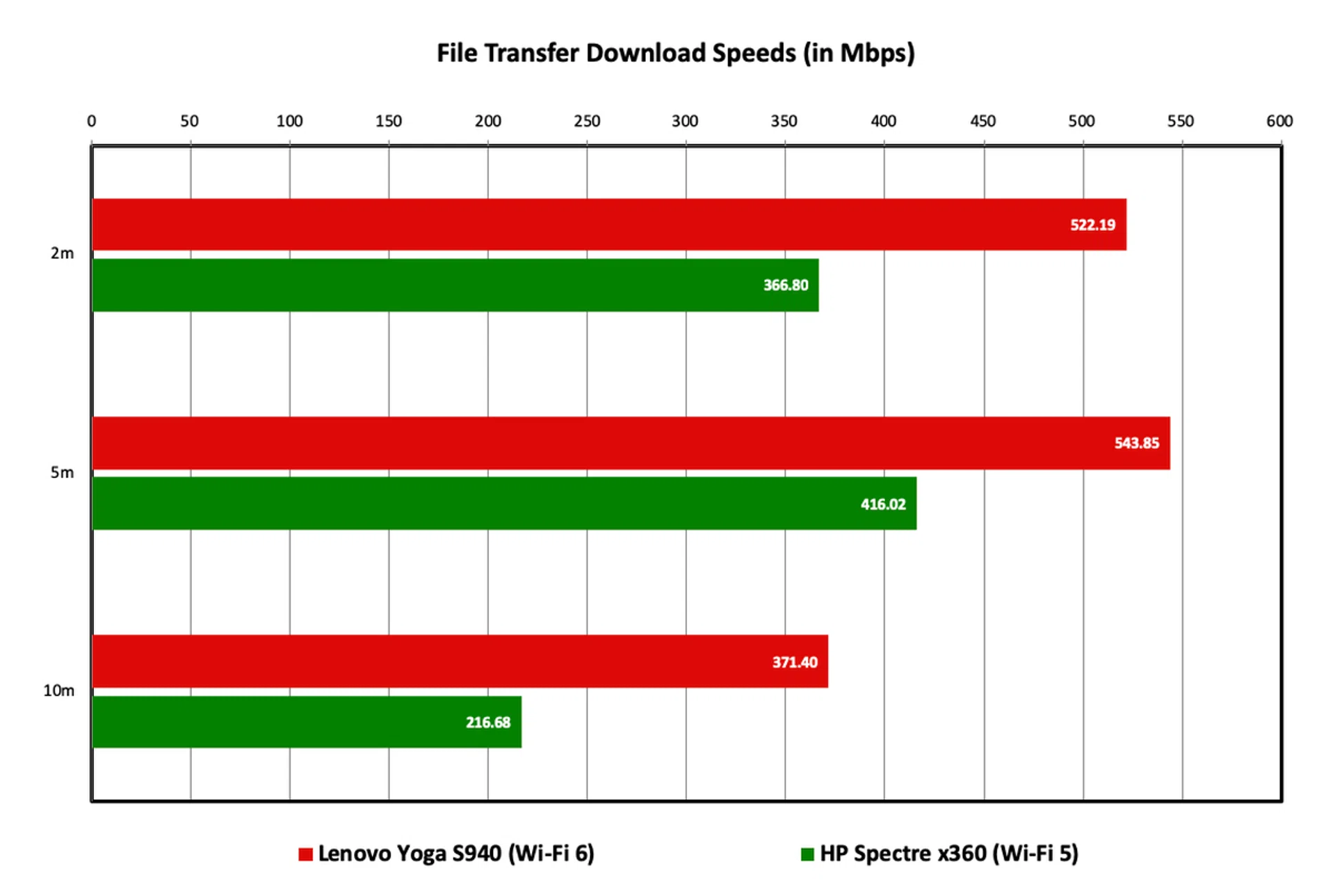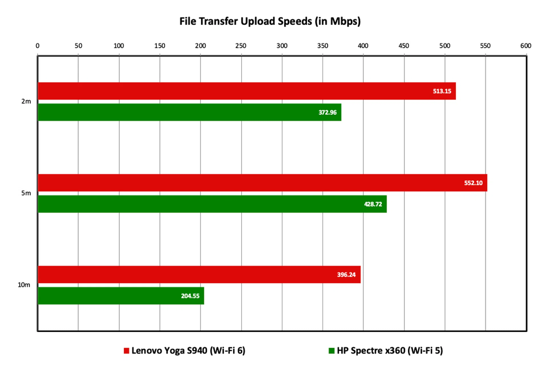 Unsurprisingly, we found the Yoga C940, which is Wi-Fi 6-enabled, to be significantly faster (anywhere from 28% to as much as 90%) than last year’s HP Spectre x360, which only supports Wi-Fi 5.
