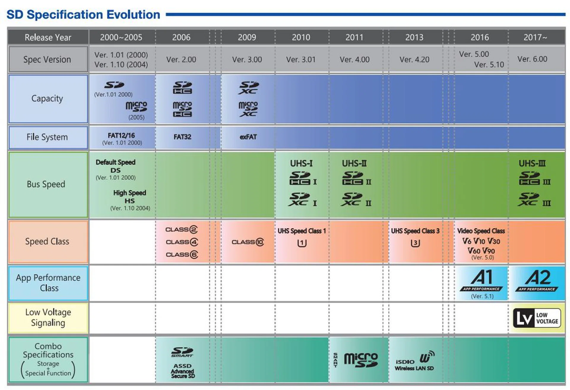Here's a table that captures how the SD card specifications have evolved over time:-