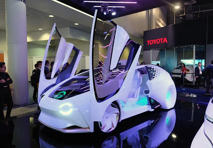 The big news at Toyota this year is its E-Palette flexible vehicle concept. It wasn't on display, but I did find last year's Concept-i autonomous driving vehicle. It features advanced driving assistance in the form of an A.I. assistant called Yui.