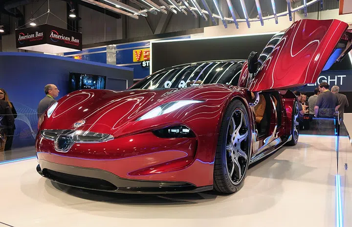 Henrik Fisker's showed off a new electric car called the Fisker EMotion. The first thing that strikes you is probably its cool gullwing-style doors. In terms of power, its electric motors put out approximately 780hp, allowing it to accelerate from 0-100km/h in under 3 seconds. Top speed is about 257km/h and the range on a single charge is over 643km.