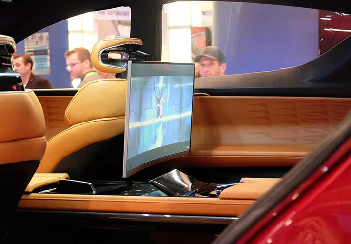 The interior of the Fisker EMotion is quite bonkers. In place of standard flat screen displays, the passengers in the rear can get curved displays! Pretty sure it would compromise safety though.