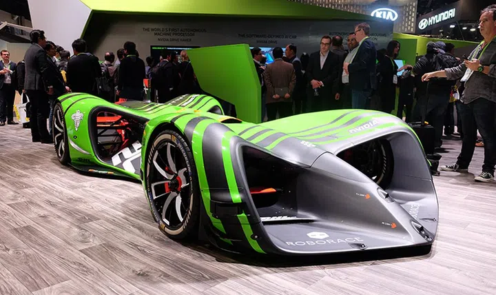 This is a race car, except it isn't an ordinary race car. There's no space for a driver, instead, this is a fully autonomous race car and it was developed by NVIDIA and Roborace to showcase NVIDIA's autonomous driving capabilities. For the latest update on Roborace, check here.