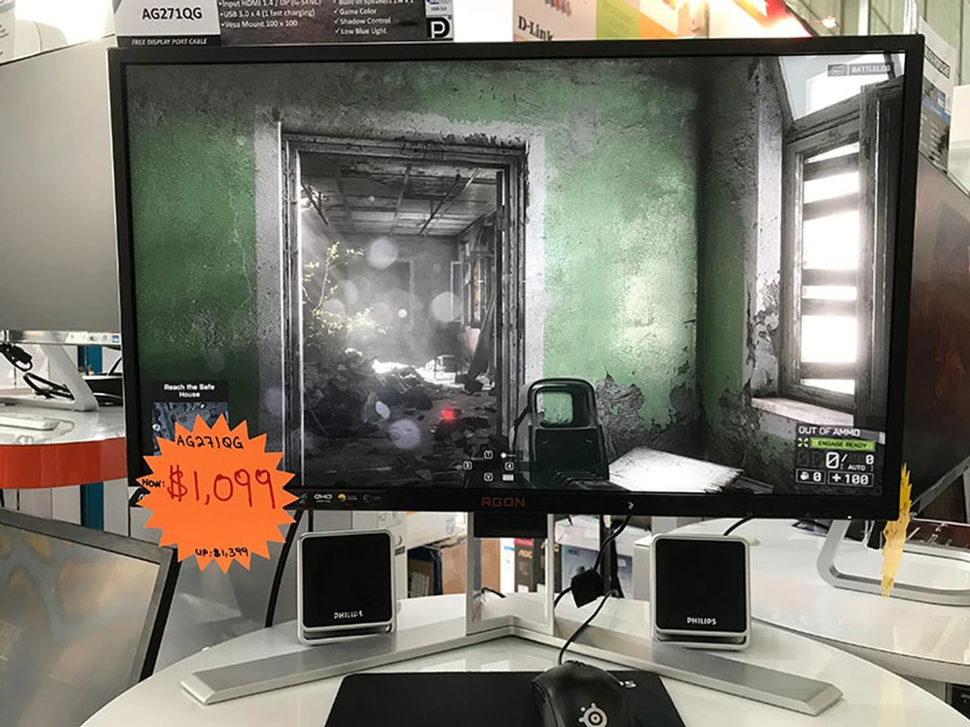 The AOC AG271QG is a 27-inch, 2,560 x 1,440-pixel IPS display that supports NVIDIA G-Sync, a fast 165Hz refresh rate, with inputs like HDMI and DisplayPort. Going for $1,099 at CEF with free DisplayPort cable, down from the usual $1,399.