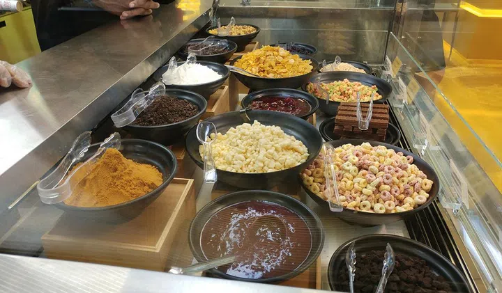 Then add toppings! Most toppings are 70 cents per serve, but there are premium ones that will cost $1.20 each.