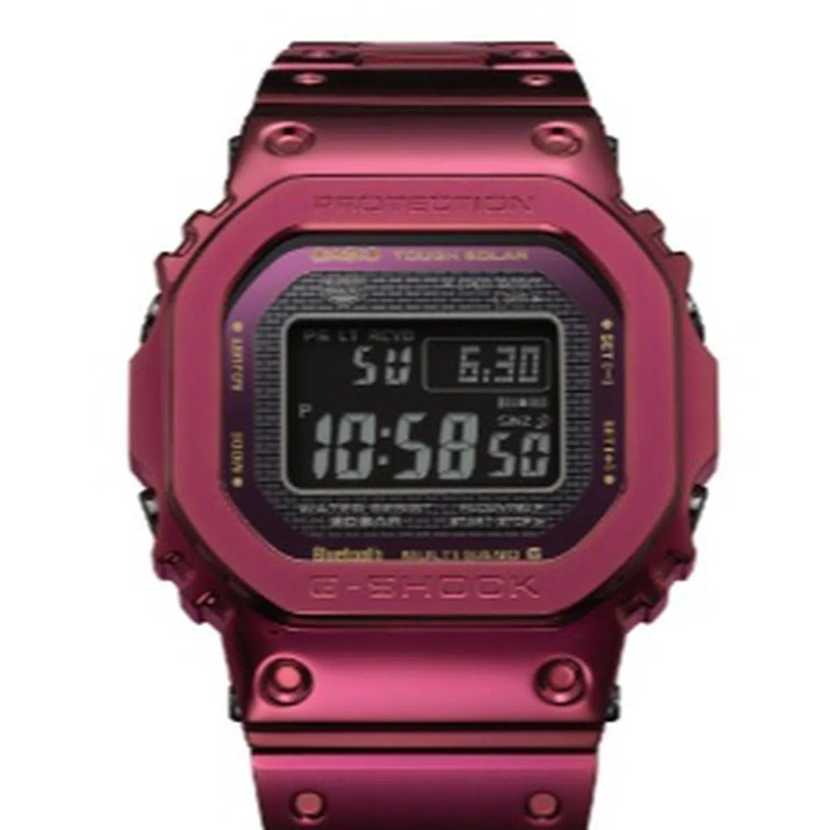 The newG-Shock GMW-B5000RD-4DRfeatures a red ion-plated case and bracelet. It is highly resistant to shock and it's water-resistant to 200 metres. Like others in the series, it also includes a chronograph, world time, alarm, and solar charging, and Multi-Band 6 time syncing with atomic radio signals.