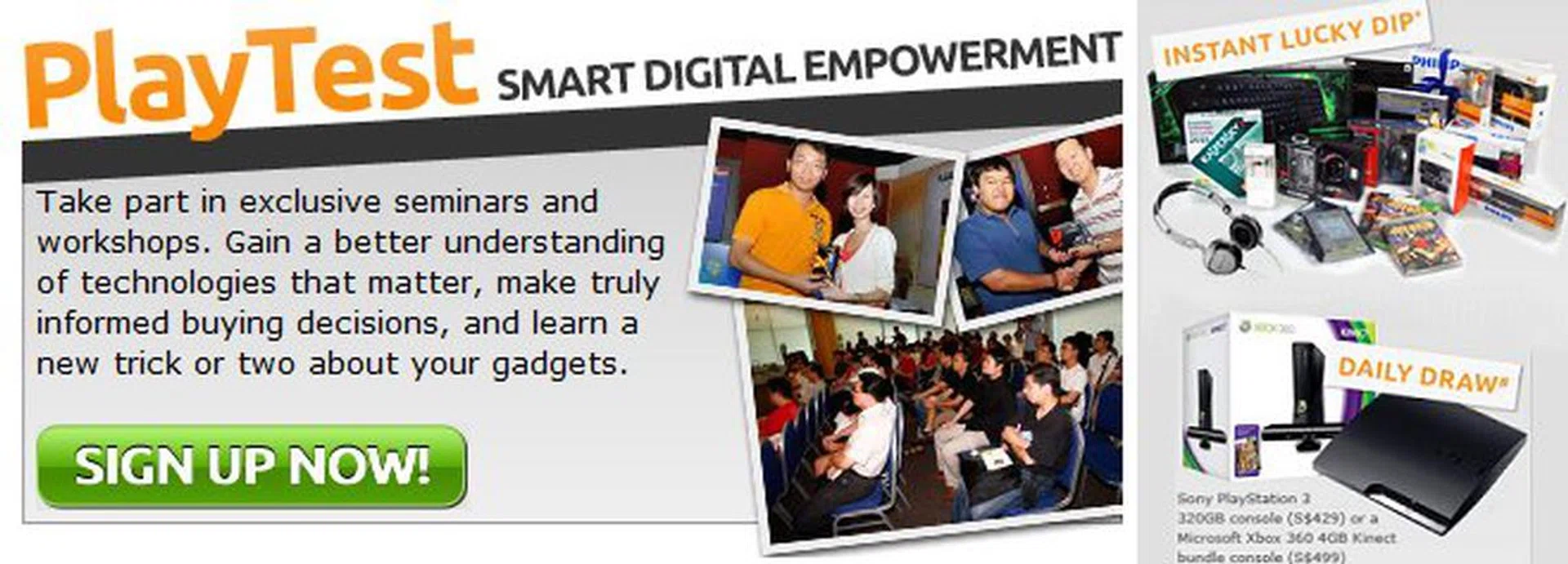 Something special that's happening this time round is our partnership with the Comex 2011 show to bring you our PlayTest event right where it's all happening! We've lined up several partner presentations (from Canon, HTC, Samsung, SingTel and Toshiba) throughout all four days of the event to showcase their newest gadgets and services as well as to educate the audience on their benefits. Of course, as with any PlayTest event, the HWZ and HWM editorial teams will be around to also provide guidance and an overview of what's trending. So not only do you get to know of the latest gadgets and speak to the editorial team, you'll definitely walk away more informed and have a chance to win some big prizes!