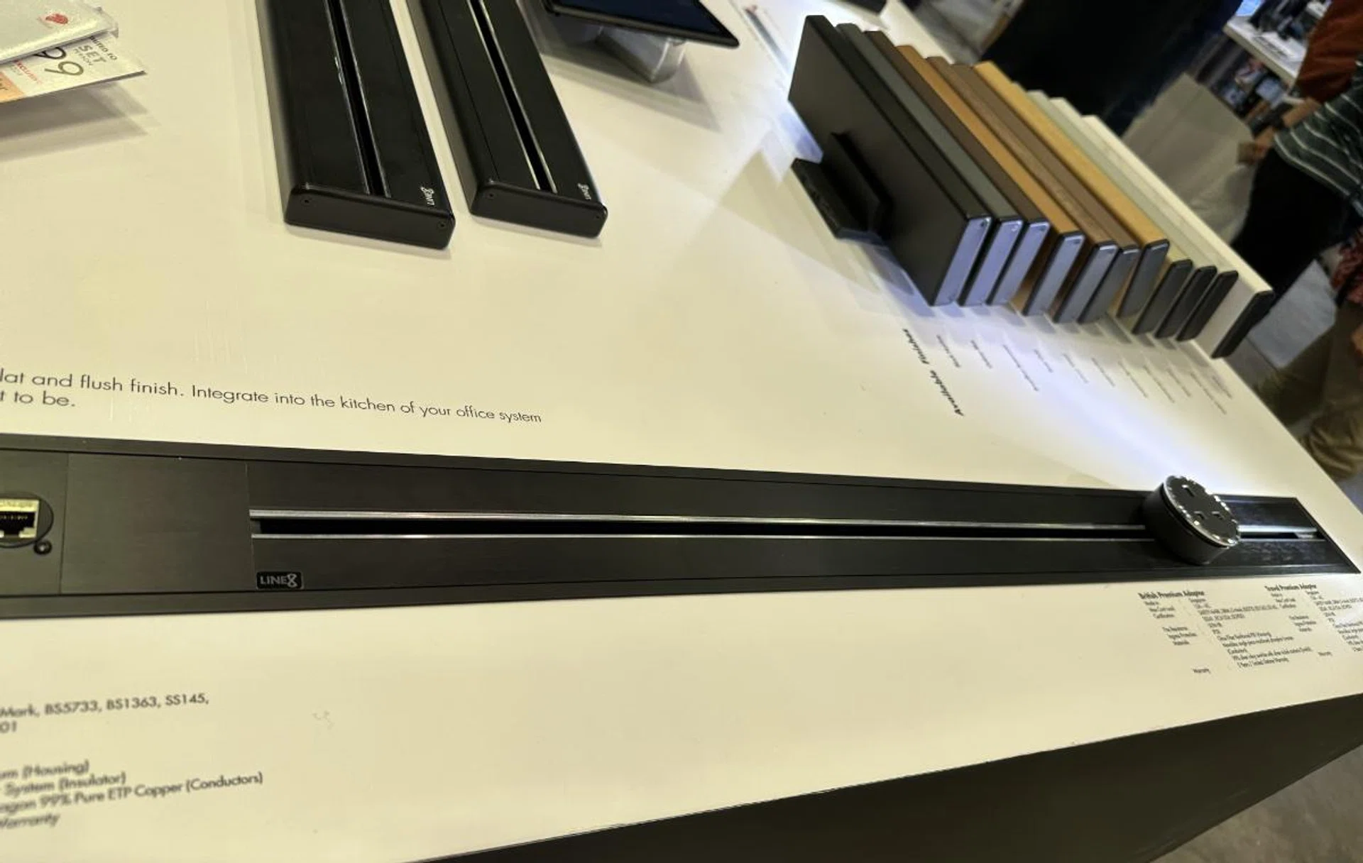 Able to be mounted anywhere, the Line8 Model S is a 1000mm power track that comes in black or a coloured finish and can be used to power any device requiring power. It can also use different adaptors like USB-C to charge mobile phones and tablets.
