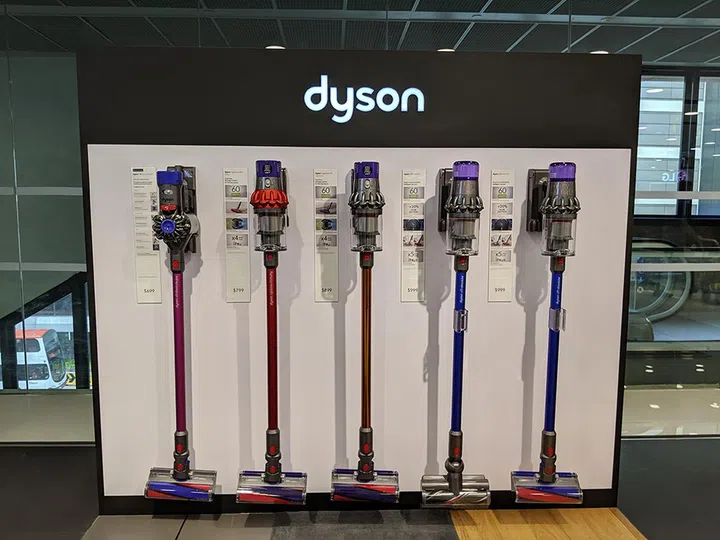 There's an entire space for Dyson vacuum cleaners, fans, and hair dryers.
