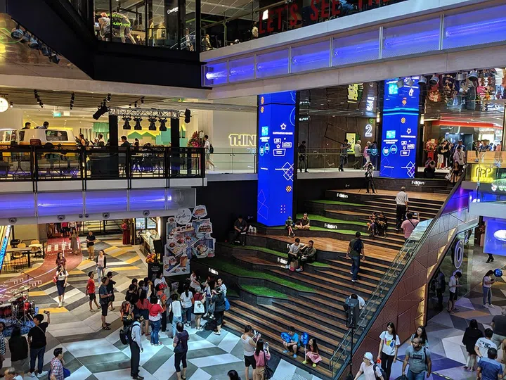 One you step in though, the mall is completely unrecognizable. It's undergone a complete facelift, and it now features sprawling walkways and modern shopfronts encased in glass on all sides. Some sort of neon lighting lines each floor as well, which helps the whole place feel even more vibrant.