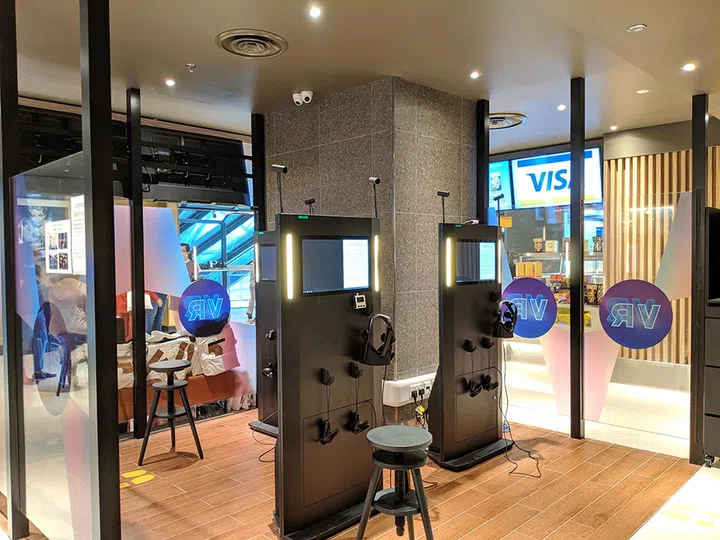 There are also VR booths where you can try your hand at games or watch movies powered by the Oculus Rift. From 28 June to 31 July, you'll be able to play Beat Saber, watch the movie Invasion!, or check out the NextVR and Cirque du Soleil experiences.