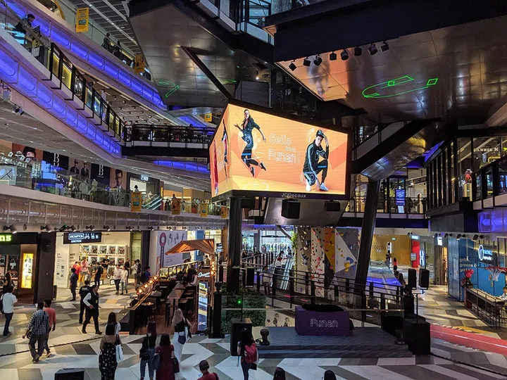You'll find around 40 smart directories in Funan, which you can use to browse and search for trending merchandise before mapping the shortest route possible to reach a store. These directories are also equipped with sensors, and they can help make product recommendations based on your demographic profile.