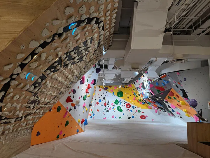 There's even an indoor bouldering area if you prefer that to rock-climbing. To the left, you can see a digital wall of sorts where select hand and footholds will light up to illuminate your path.