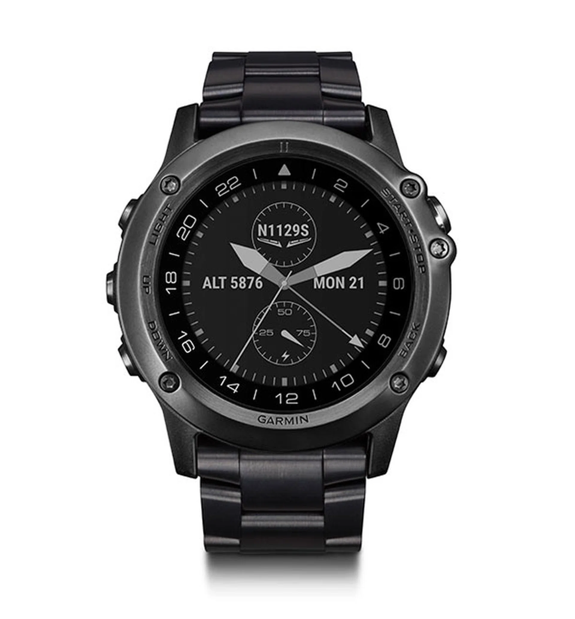 Garmin's D2 Bravo Titanium aviator watch has a bold design, with a color display, gunmetal bezel and diamond-like carbon coated hybrid titanium band. The watch comes with GPS, an activity tracker, heart-rate tracker, automated flight logging and other smart features for pilots, like a worldwide airport database.