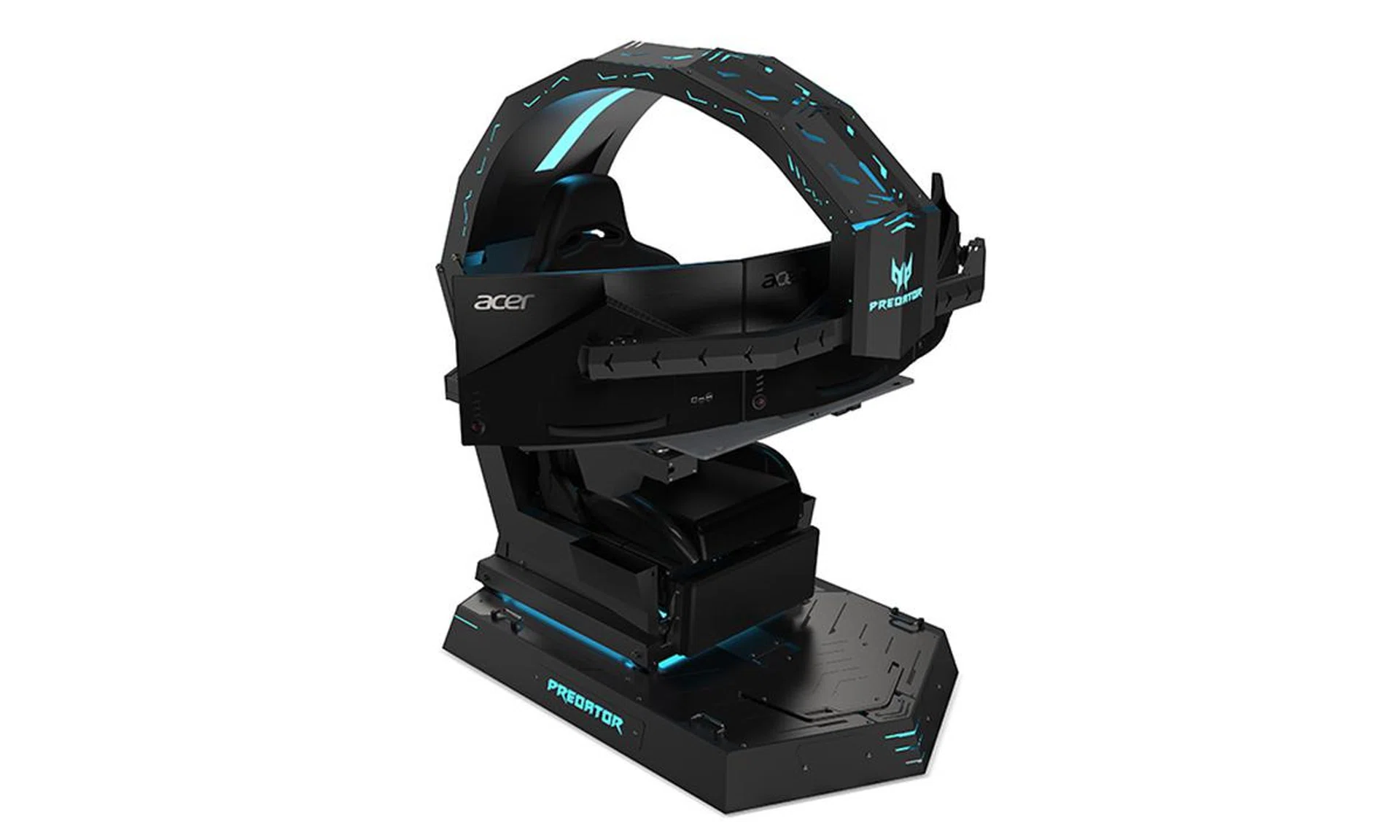 Wild, insane, gargantuan — there aren’t enough adjectives to describe the Predator Thronos. This next-level gaming chair has a 1.5 meters tall steel structure and comes in imposing black with white or blue accents. Impact in-game and the chair vibrates. Said chair is adjustable and is housed in a cabin that reclines up to 140 degrees! An overhead brace supports three 27-inch gaming monitors, with space for a Predator gaming PC.