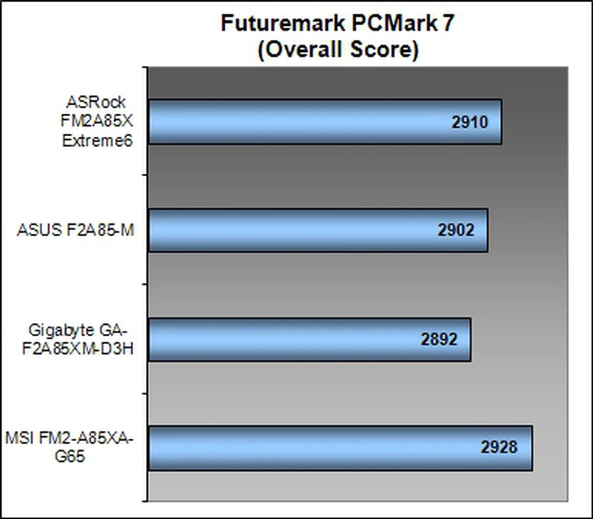 Criteria/Model | ASRock FM2A85X Extreme6 | ASUS F2A85-M | Gigabyte GA-F2A85XM-D3H | MSI FM2-A85XA-G65 |