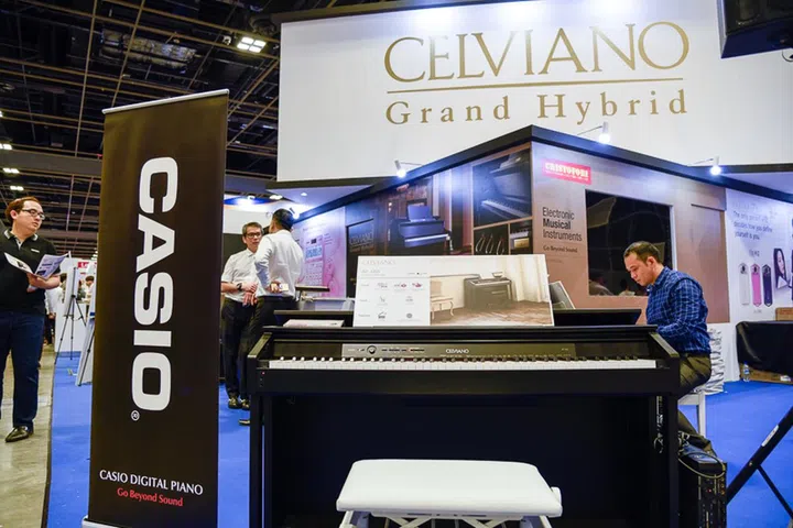 Musicians, Casio has a booth for its Privia line of keyboards and Celviano grand hybrids. Deals include the Privia PX-160 at S$899 (U.P. S$1,399), with free piano stand, sustain pedal, piano bench and Audio Technical ATH-S500 headphones, and the Celviano AP-460 at S$1,699 (U.P. S$2,099), with a pair of free Audio Technical ATH-S500 headphones.