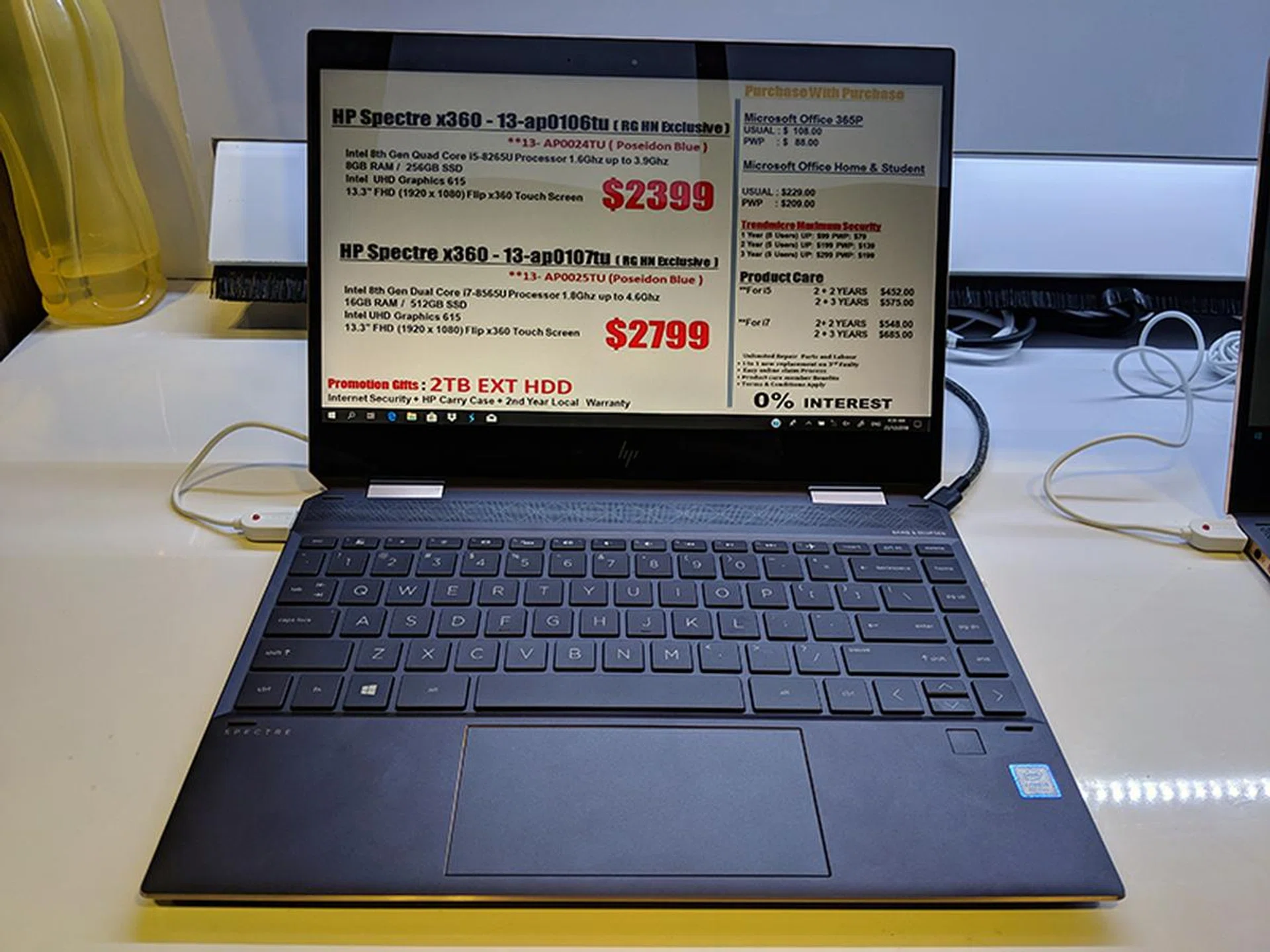 Winner of our Editor’s Choice for Best Ultraportable Notebook, the HP Spectre x360 offers good design, plenty of useful ports, and also a respectable battery life. At IT Show, the model with Intel Core i7-8565U processor, 13.3-inch full HD touch display, 16GB of RAM, and 512GB SSD is going for S$2,799. It even comes with a 2TB external HDD, an anti-virus subscription, and a carrying case.