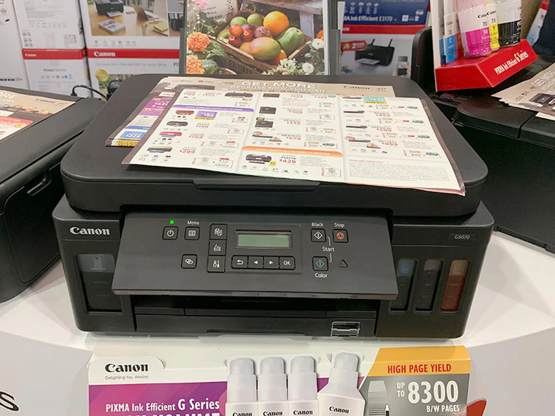 The new Pixma G6070 is a 3-in1 (print, scan, copy) ink tank with wireless and auto duplex print support and up to 13ipm mono and 6.8ipm color print speeds. Going for S$429 at the show, and comes with free trolley and S$30 NTUC vouchers.