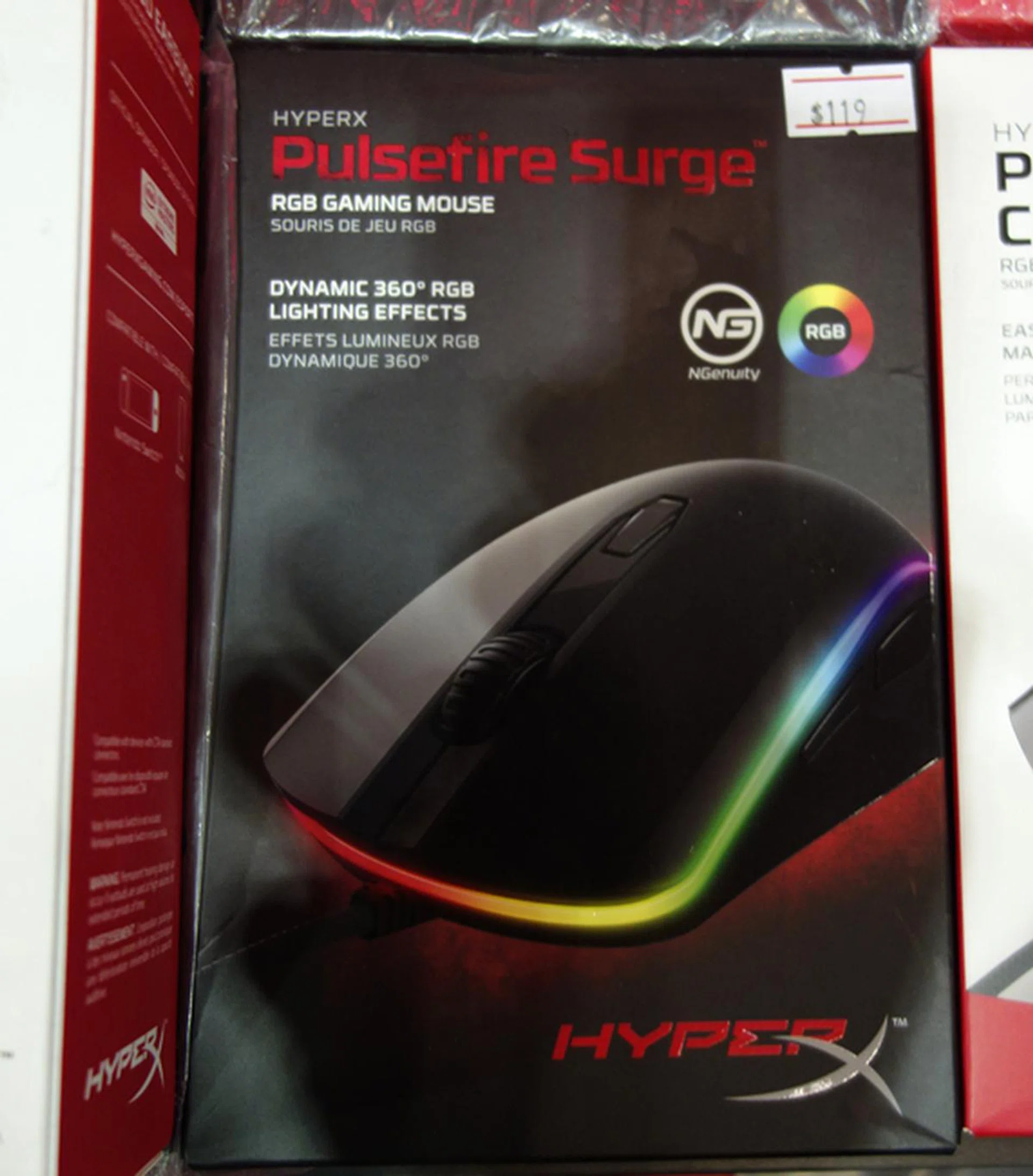The HyperX Pulsefire Surge gaming mouse features a Pixart 3389 sensor and RGB lighting effects with its unique light ring. Its native DPI settings can go as high as 16,000 DPI for precision. It's retailing at $119.