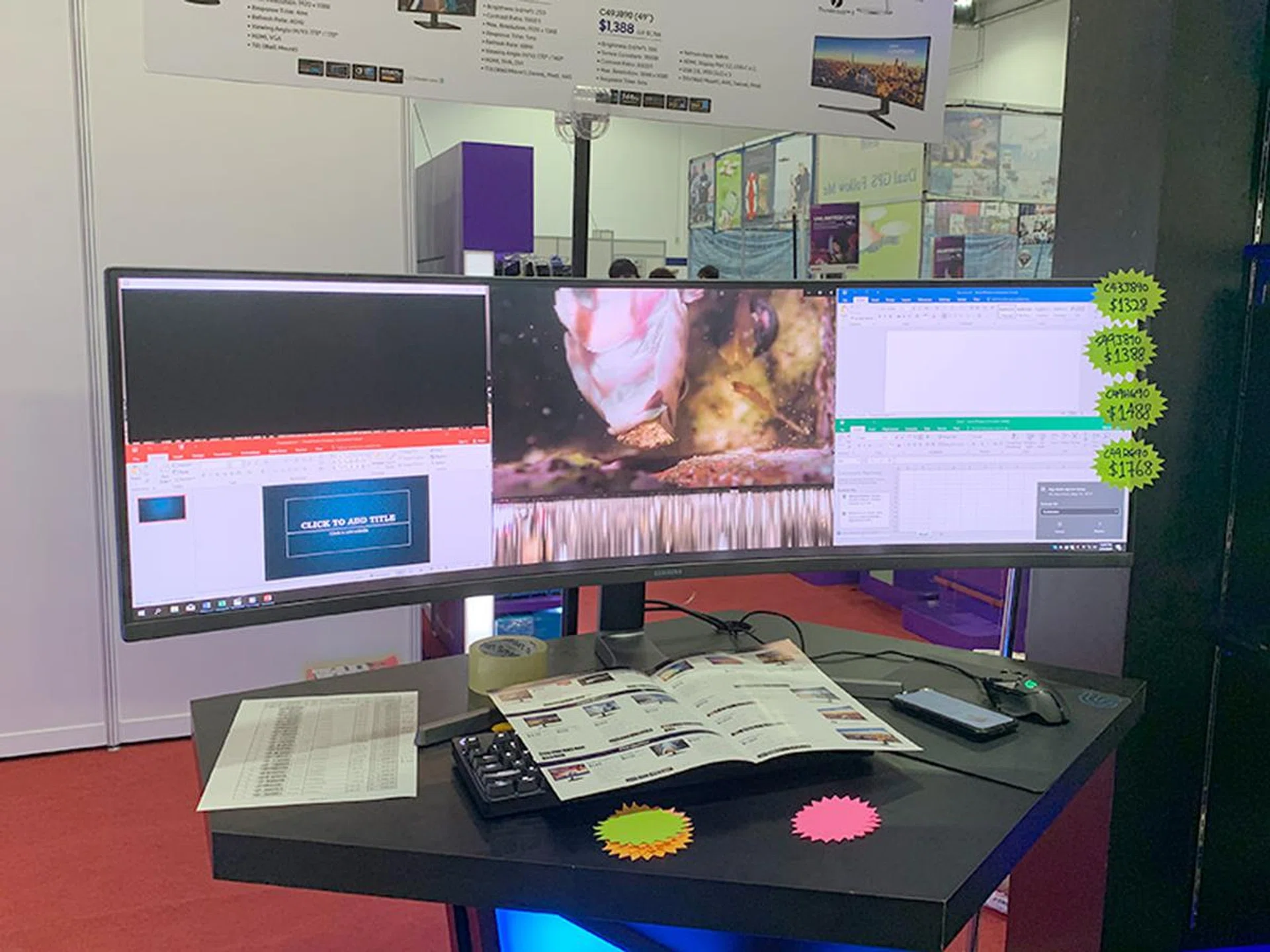 The 49-inch, super-ultra-wide CRG9 gaming monitor (5,120 x 1,440 pixels) offers a 120Hz refresh rate with a fast 4ms response time, touts HDR10 support with a peak brightness of 1,000 nits, and supports PBP (picture-by-picture) functionality to allow two video sources to be viewed on the same screen. Going for S$1,768 (U.P: S$2,288). Alternatively, you can consider the C49HG90, whic is a 49-inch curved QLED monitor with a 3,840 x 1,080-pixel resolution. A productivity powerhouse, it makes for a decent gaming monitor too, thanks to its support for 144Hz refresh rate and 1ms response time. On the monitor you’ll also find plenty of ports, including DisplayPort (and mini-DP), HDMI, and USB-C. This model is going S$1,488 (U.P: S$1,988).