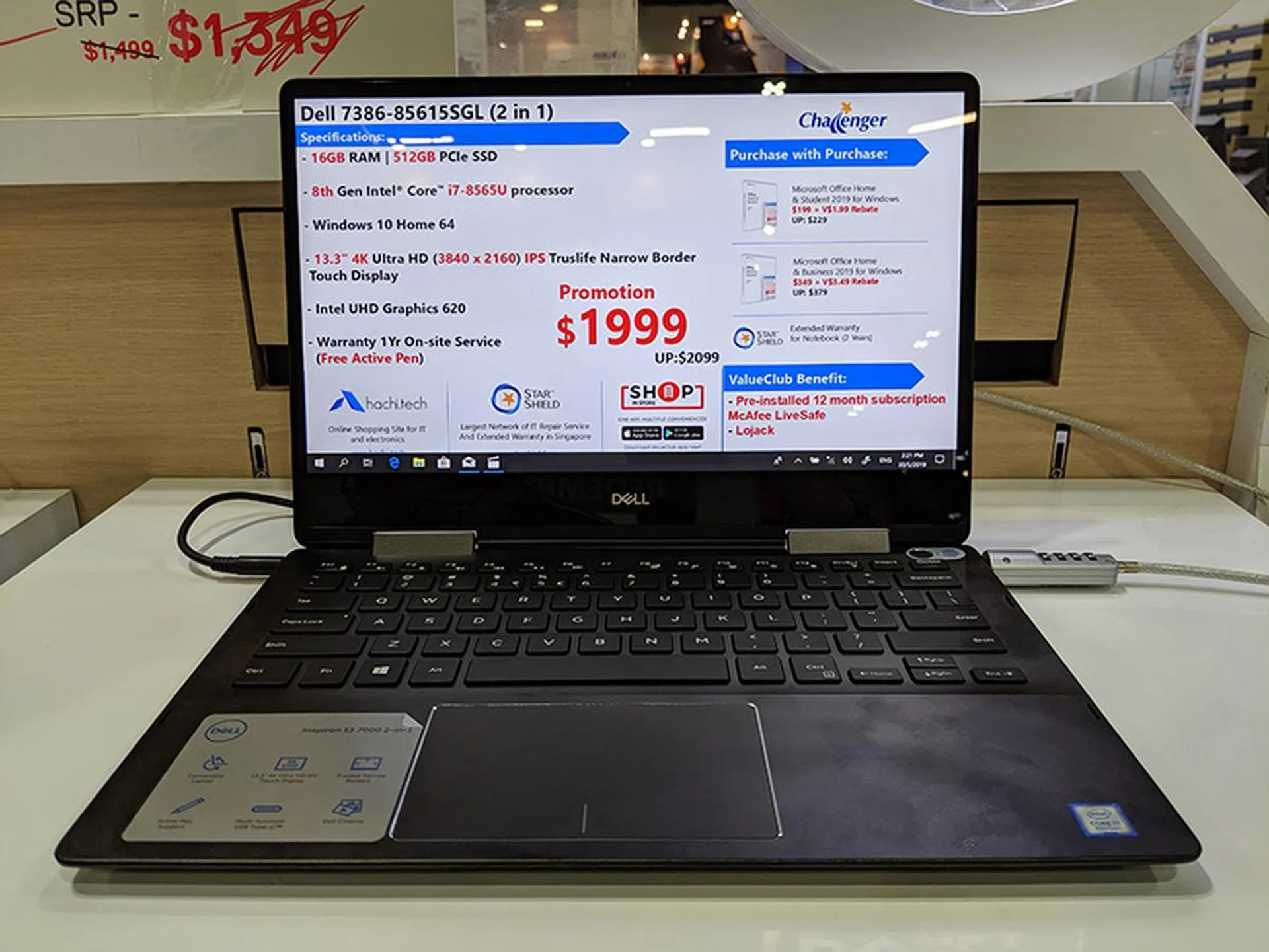 The Dell Inspiron 13 7000 2-in-1 is equipped with an Intel Core i7-8565U processor, 16GB of RAM, and a 512GB PCIe SSD. Its 13.3-inch display has a crisp 4K IPS touchscreen panel as well, and you can fold it over for use like a tablet. You can get it at S$1,999 (U.P. S$2,099), together with 1 year of Dell Premium Support, Absolute Lojack, and a 1-year McAfee LiveSafe subscription.