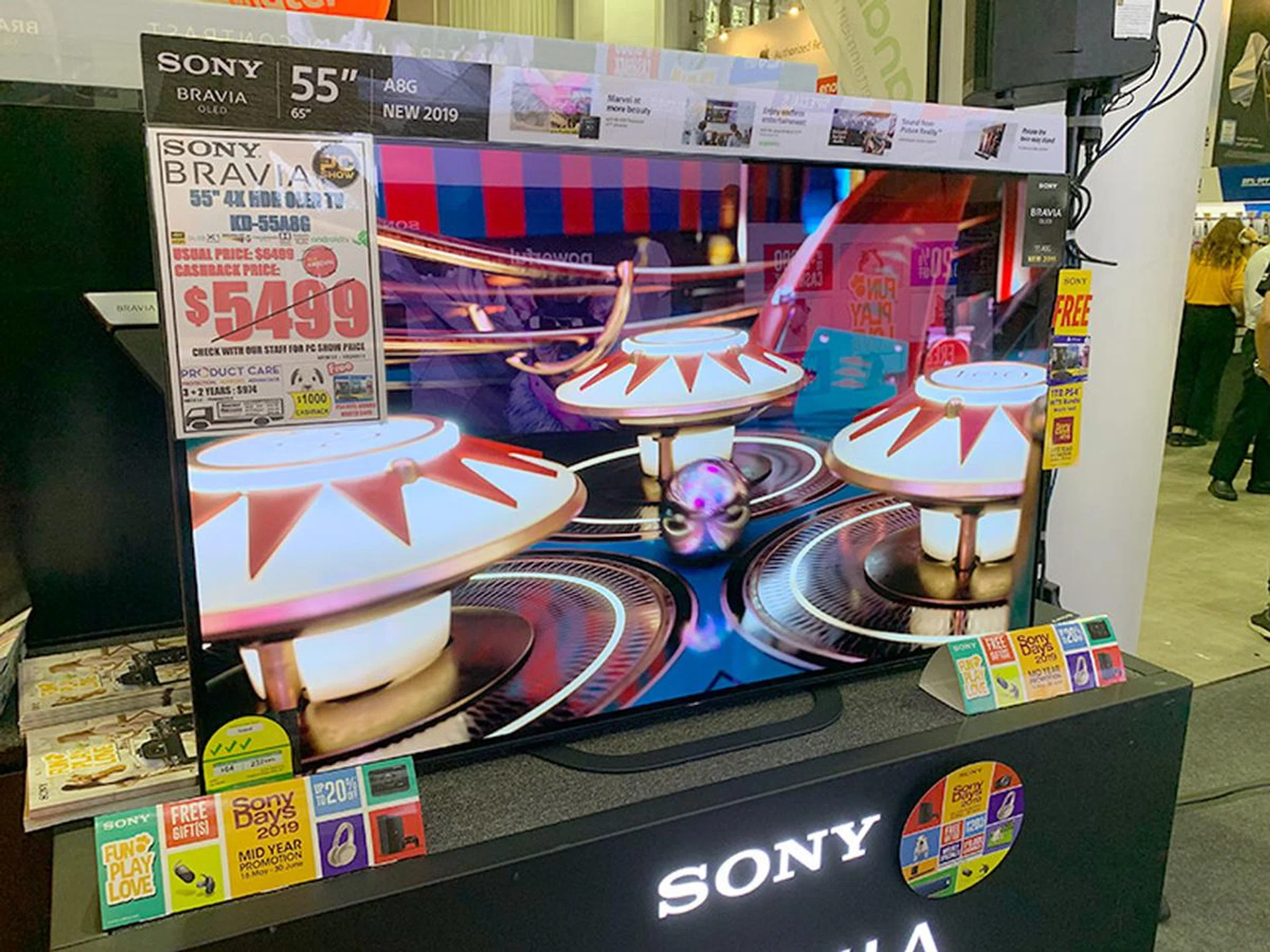 Sitting one rung below the A9G is the A8G. Still a premium 4K OLED TV, it uses the slightly less powerful 4K HDR Processor X1 Extreme, and has a less powerful Acoustic Surface Audio system. One thing it does have that the flagship A9G doesn’t is a stand that you can rotate 180° for it to rise up to give you space to put your soundbar. The 65-inch model is going for S$6,749 and you get a free PS4 HITS bundle (total worth S$449).