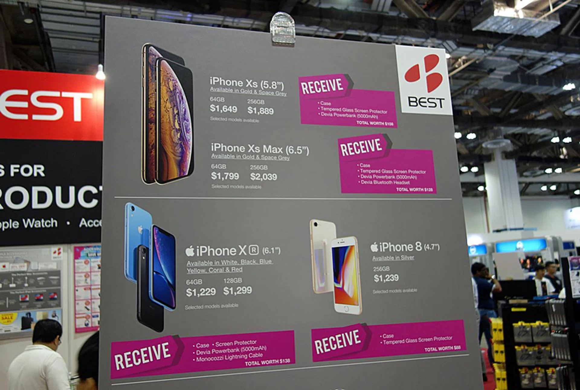 Get your Apple iPhones here from Best Denki, the iPhone XS Max 64GB is going for the usual $1,799, and the free gift bundle comprises a case, a tempered glass screen protector, a Devia 5,000mAh powerbank, and a Devia Bluetooth headset (worth $128).