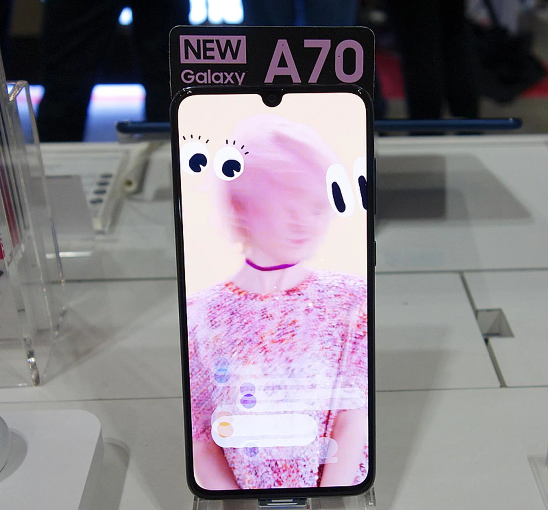 The Samsung A70 boasts of the largest screen in the Galaxy A series family, due to its massive 6.7-inch full HD+ Super AMOLED Infinity U display, with an aspect ratio of 20:9 for an immersive viewing experience. Its 4,500mAh battery supports Super-Fast Charging at 25W. The device sports three rear cameras consisting of a primary 32MP f/1.7 lens, an ultra-wide angle 8MP f/2.2 lens, and a 5MP f/2.2 depth lens. On the front, there's a 32MP f/2.0 lens. It's retailing at its launch price $498.