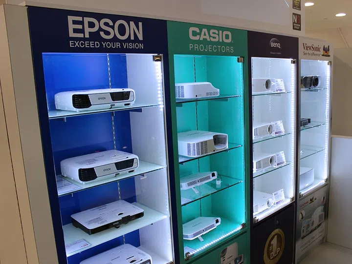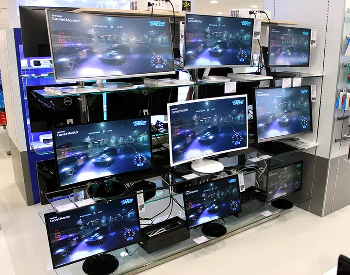 With monitors all stacked and positioned next to each other, it is easier for shoppers to compare and pick their favorite monitor.