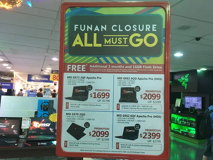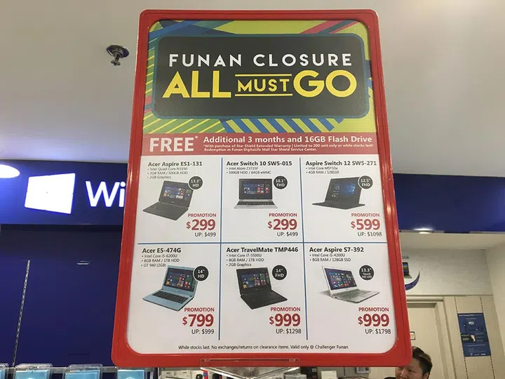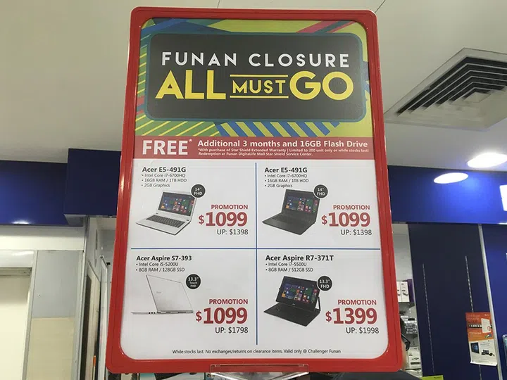 Do you know that Challenger is closing its megastore at Funan DigitaLife Mall, and is now having a sale?