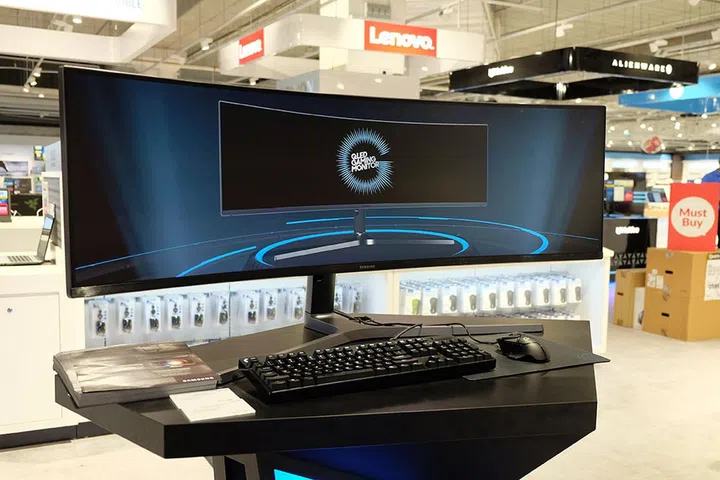 There's also the mandatory curved display showcase, featuring the expansive 49-inch Samsung CHG90 QLED gaming monitor. It has a 3,840 x 1,080-pixel resolution and 144Hz refresh rate, so gaming on this thing will be quite a different experience entirely.