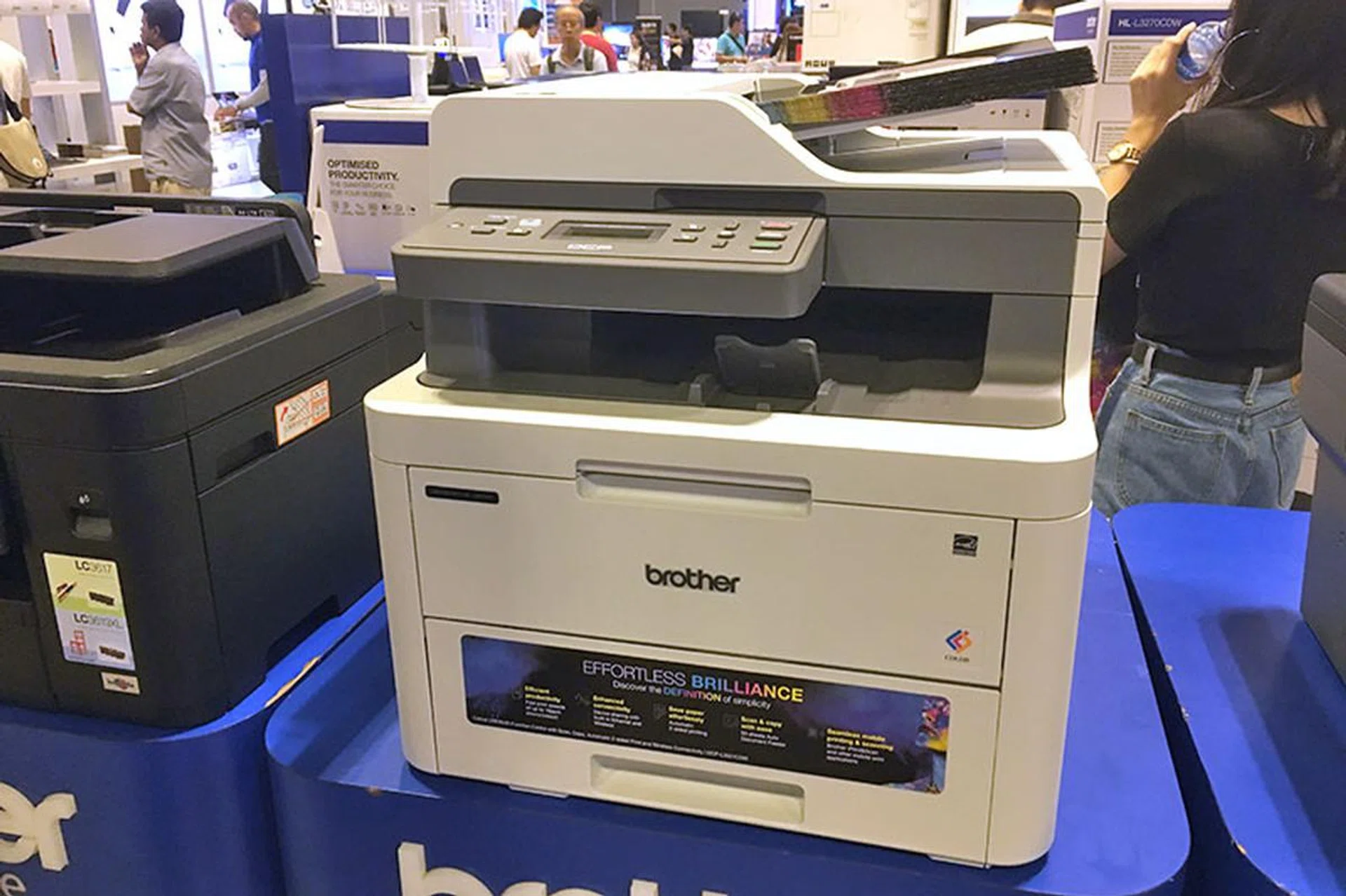 The Brother DCP-L3551 CDW is a color laser printer (18ppm) with print, scan, and copy functions. It supports duplex printing and wireless networking, too. Going for a very decent $448 at this show.