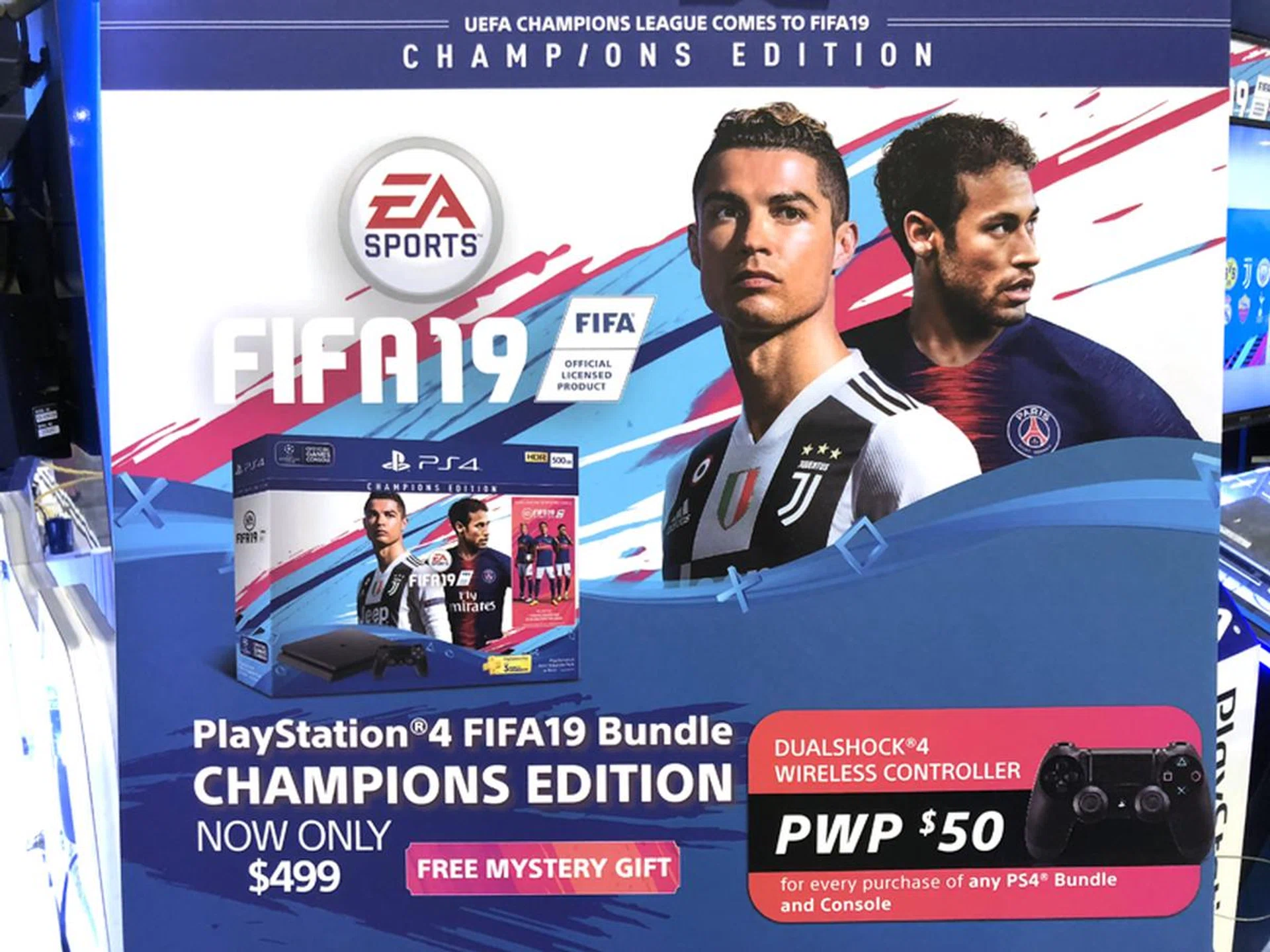 Get the PlayStation 4 FIFA 19 bundle Champions Edition at The Tech Show for just S$499 and get a free mystery gift (it's a Playstation backpack!) and get a second Dualshock 4 wireless controller for just S$50.
