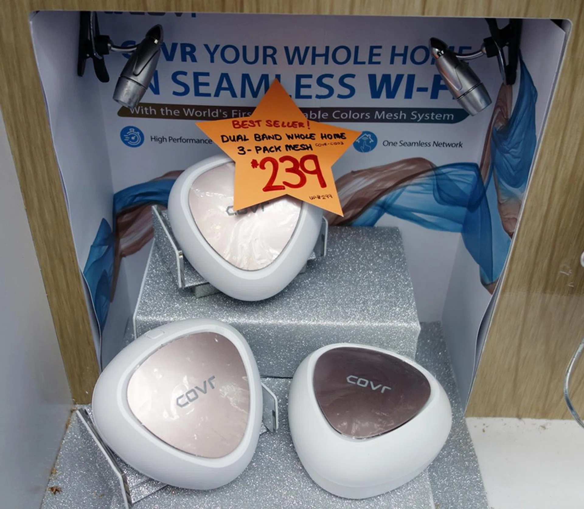 The Covr-C1203 is D-Link's cute-looking mesh networking system. Each node is a little puck-like unit that comes with changeable covers. It is a dual-band AC1200-class system, which means it supports speeds of up to 300Mbps on its 2.4GHz network and 867Mbps on its 5GHz network. A 3-pack is going for $239 (U.P S$299).