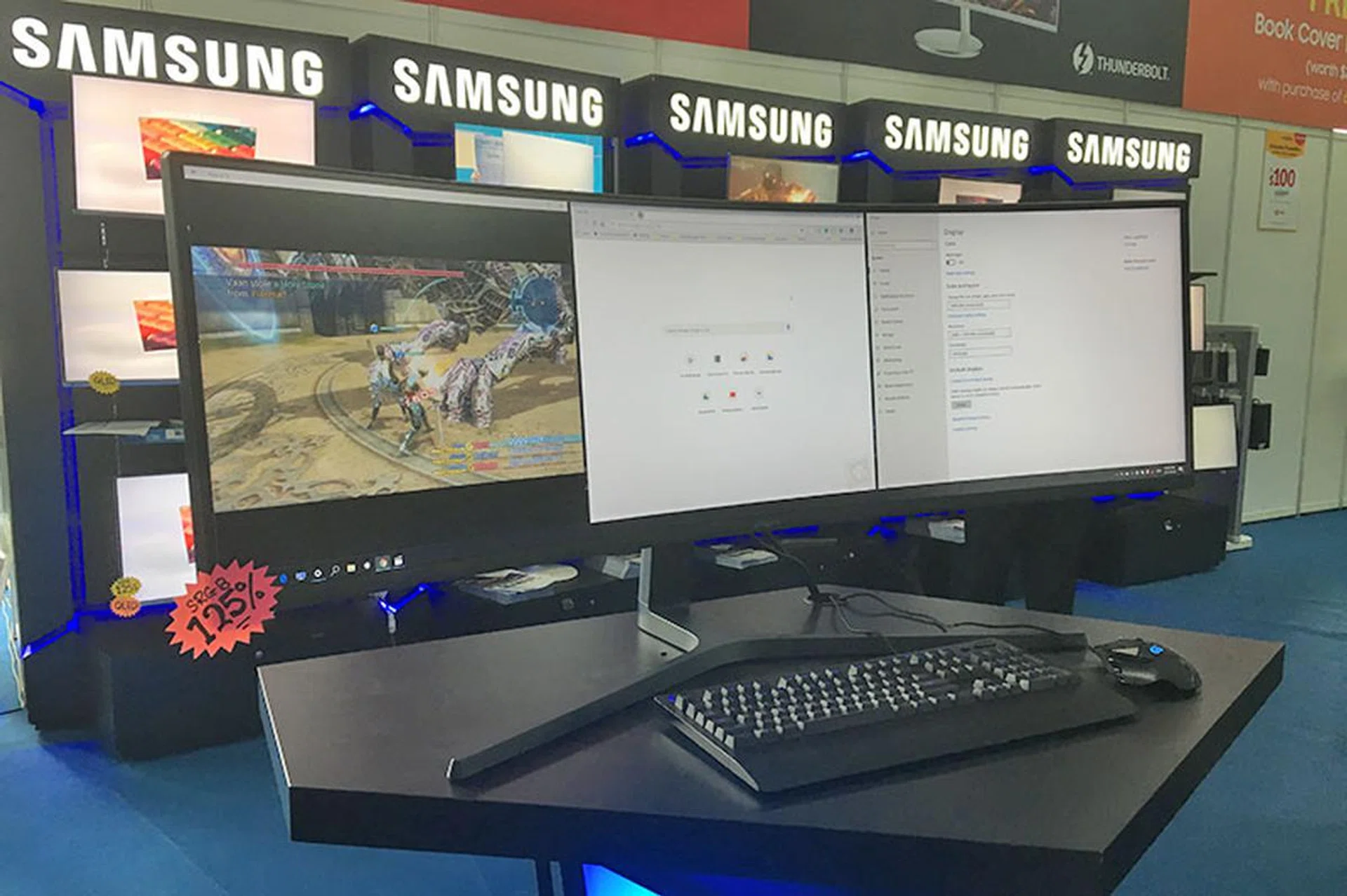 The Samsung C49J890 is a 49-inch curved monitor with support for a 144Hz refresh rate and 5ms response time; HDMI, DisplayPort, and USB-C connectivity; and picture-in-picture/picture-by-picture functionality. Usually going for $1,788, you can pick one up at the show for $1,488.
