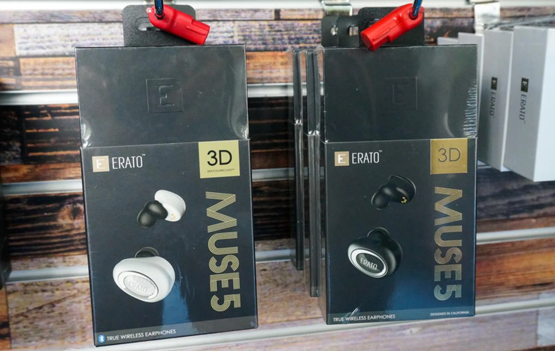 Erato's at The Tech Show 2018 with their Muse 5 true wireless ear buds. These have Erato 3D Sound, and offer up to 12 hours of listening time on the go thanks to a portable charging case that gives you two extra charges. This is going for just $199 at the show, a huge savings of $100 from the usual price of $299!