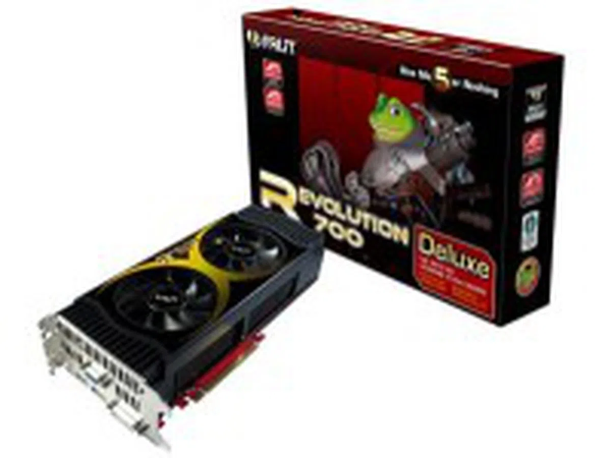 If you thought the standard HD 4870 X2 was big, you haven't seen anything yet. Occupying three slots and boasting dual fans, the Palit Revolution 700 Deluxe is the quad-stacker of graphics cards. Nothing in our labs was nearly as huge. Furthermore, it comes factory-overclocked to push ahead of the already fast reference card. This is one radical graphics card. | |