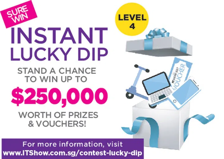 There’s a sure-win instant lucky dip booth at Level 4, Hall 405, where you stand a chance to win up to S$250,000 worth of prizes and vouchers. But you need to register for the contest first before heading down. You can find the instructions here.