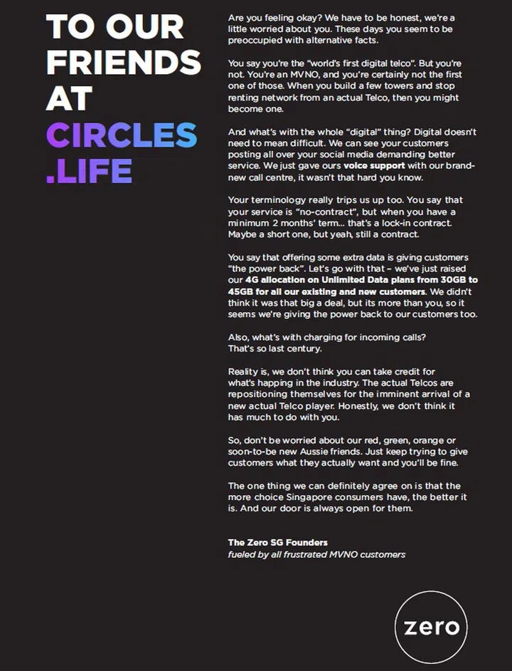 Circles.Life fired shots first at a different direction, but Zero Mobile decided to jump in.